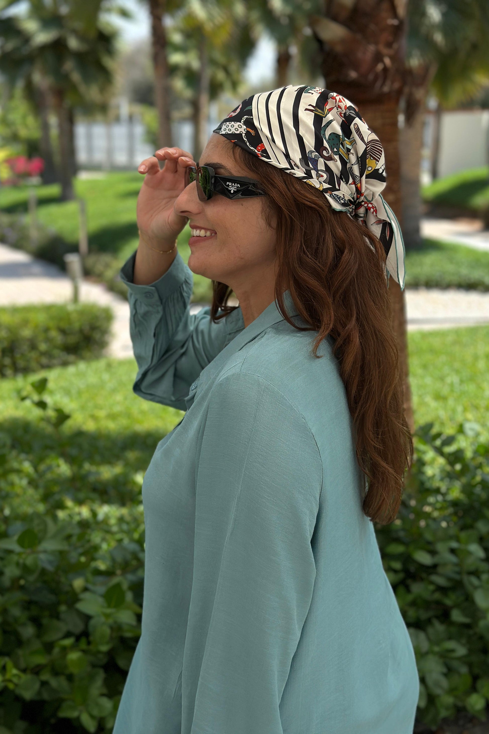 Playful storytelling with colorful motifs and abstract characters with black and white stripes evoking a classic maritime feeling with a touch of a luxury impression