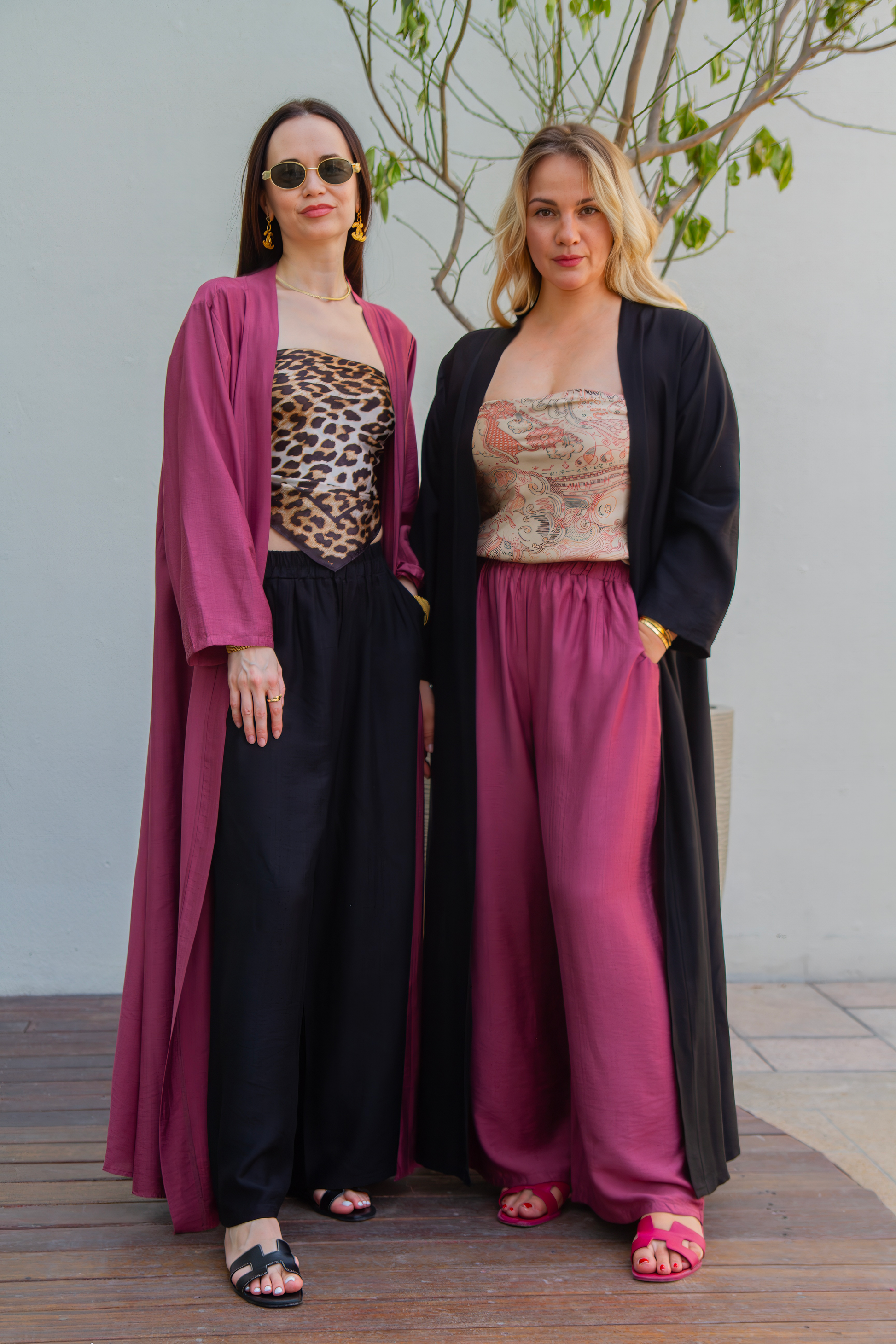 The duster drapes like poetry, while the matching wide-leg pants offer that swishy, elegant movement we all crave. It’s elevated loungewear — or chic eveningwear, depending on your mood (and your heels).